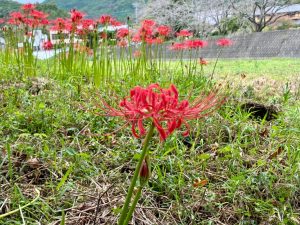 2025年9月22日彼岸花の開花状況についてお知らせします。 9月22日現在、安戸河原の彼岸花は7〜8分咲きとなっており、見頃を迎 … 続きを読む 彼岸花 開花状況 9月22日(現在)