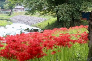 9月24日現在、安戸河原の彼岸花は8〜9分咲きとなっており、見頃を迎えております。
